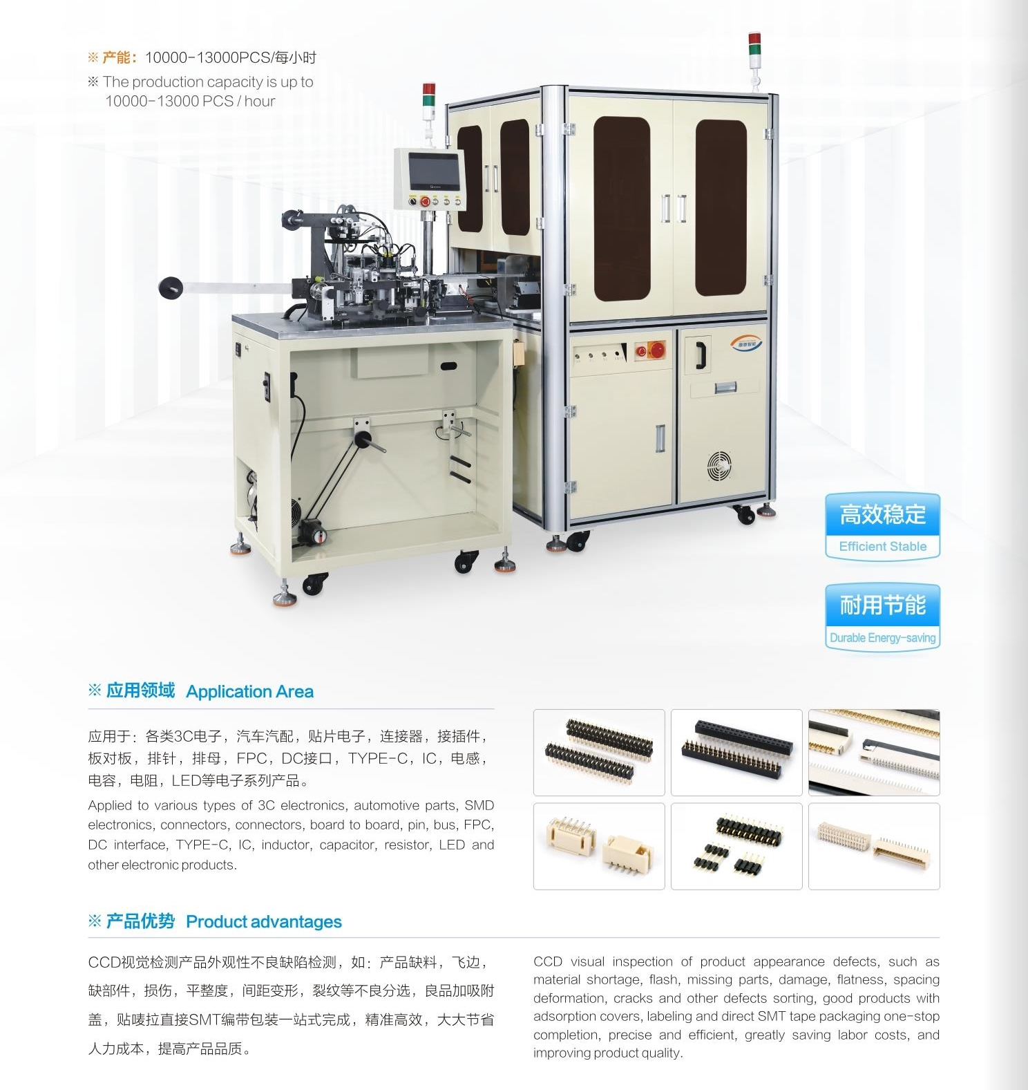 CCD光學(xué)檢測高速分選+加吸附蓋、貼嘜拉+SMT編帶包裝機(jī)