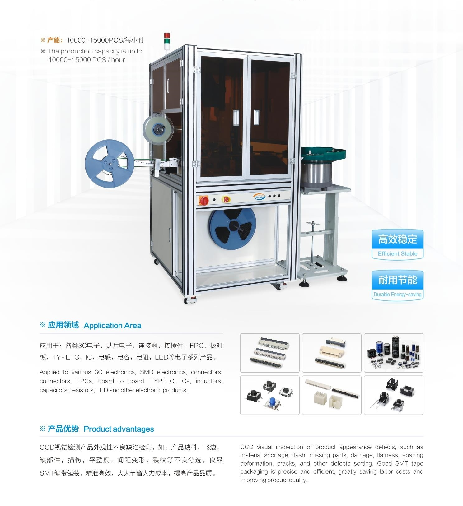 CCD光學(xué)檢測高速分選+SMT編帶包裝機(jī)